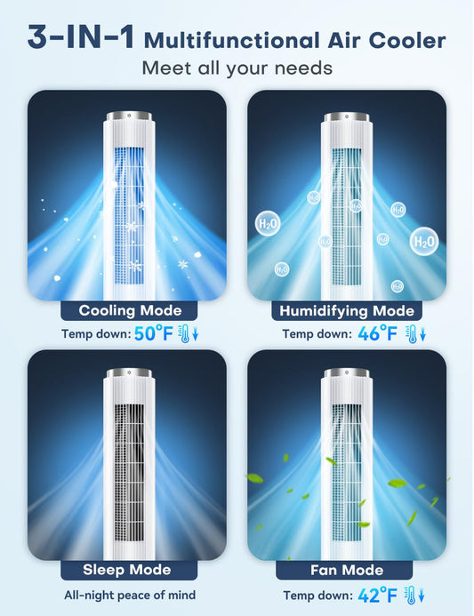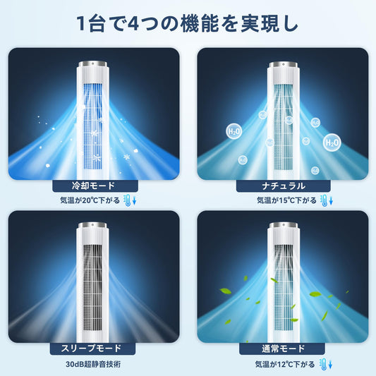 COASTY 冷風機 強力 人気 冷風扇 80W 超省エネタイプ 4L水タンク 4つの保冷バッグ クーラー並みに涼しい 12時間タイマー 3段階風量&4つのモード 70°首振り リモコン5m遠隔操作 50dB静音 スポットクーラー 家庭用 縦型タワーファン 冷風扇風機 冷房 ポータブルエアコンのような冷風機 スリムファン 熱中症対策 工事不要 エアコンが苦手な方 12畳 寝室