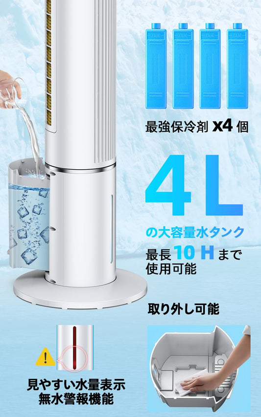 COASTY 冷風機 強力 人気 冷風扇 80W 超省エネタイプ 4L着脱式水タンク 無水警報機能 4つの保冷バッグ クーラー並みに涼しい 12時間タイマー 3段階風量&3つのモード 90°首振り リモコン5m遠隔操作 30dB静音 スポットクーラー 縦型タワーファン 冷風扇風機 冷房 ポータブルエアコンのような冷風機 スリムファン 熱中症対策 工事不要 エアコンが苦手な方 家庭用 12畳 寝室